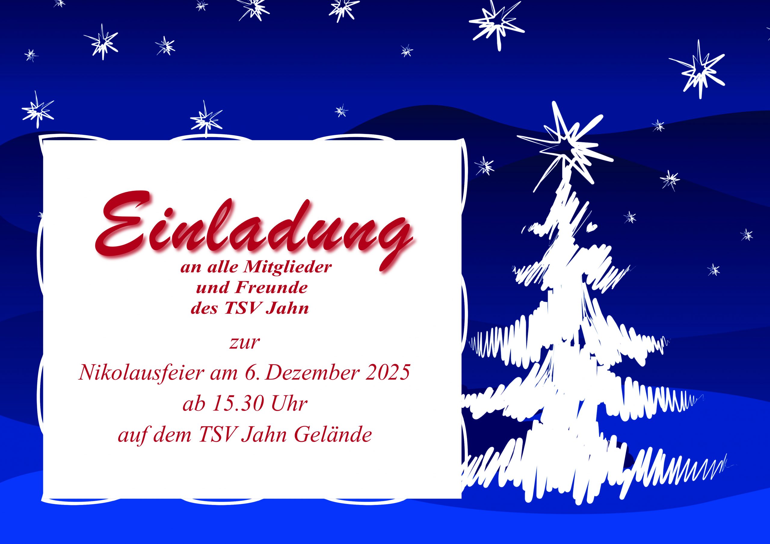 Am 3.12.2023 feierte der TSV Jahn auf seinem Gelände gemeinsam mit allen Mitgliedern Nikolaus. Der Nikolaus bedankt sich bei allen fleißigen Helfern für die schöne Veranstaltung.